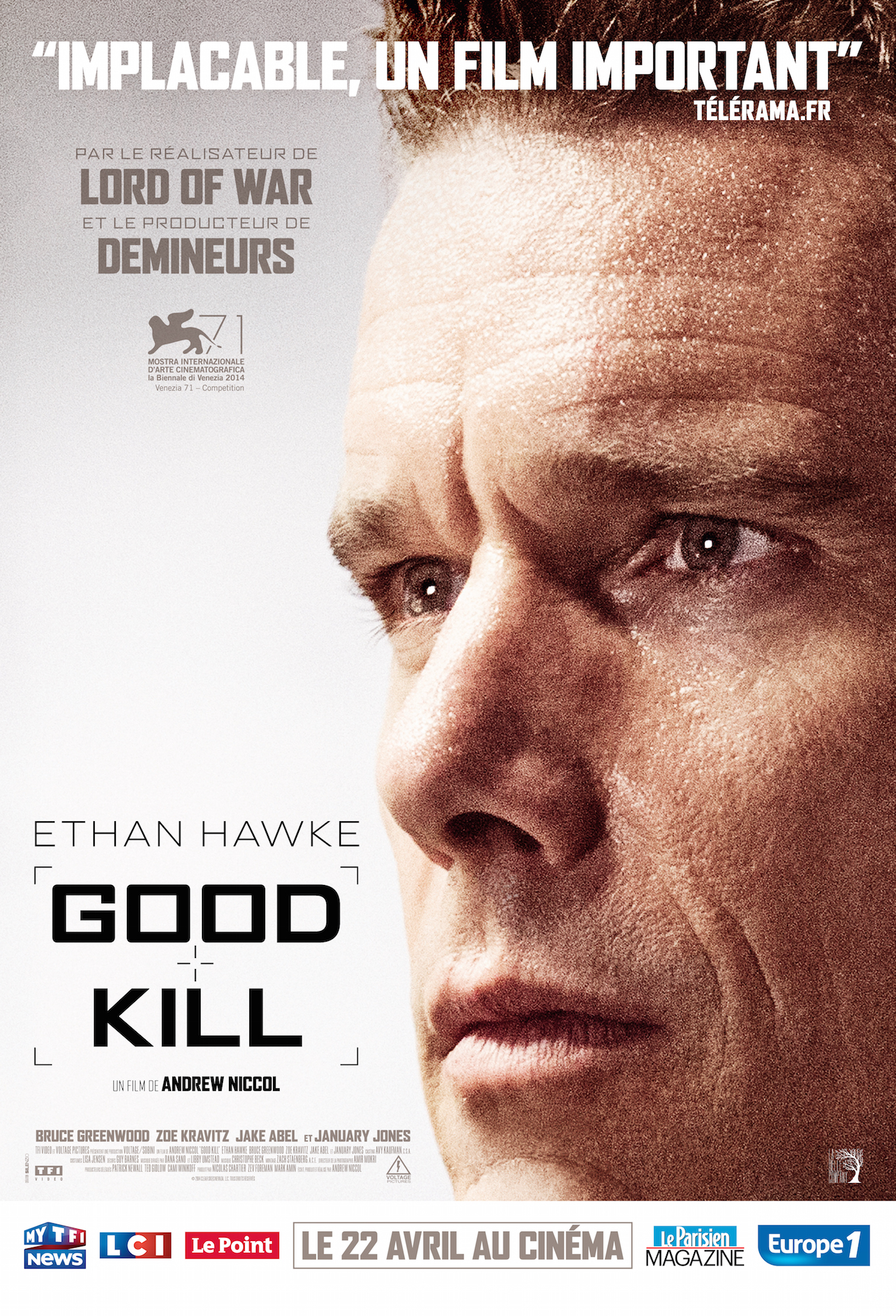 Autant de questions qui font que Good Kill est un film intéressant à voir et sans doute un peu trop intello pour certains. Est-ce parce qu’il pose trop de questions en filigrane, qu’il se base sur des faits réels et que l’armée en prend pour son garde qu’il a été vivement critiqué par cette dernière et que les critiques ont descendu en flèche ce film à sa sortie aux Etats-Unis ? Un peu dommage car c’est justement lorsque l’Amérique se fait ébranler via une remise en cause d’une de ses institutions qu’elle en devient intéressante et plus réaliste. En tout cas, le réalisateur du film, Andrew Nicol, est habitué de poser les questions qui fâchent surtout quand elles sont pertinemment et bien posées comme dans Lord of War avec Nicholas Cage par exemple.