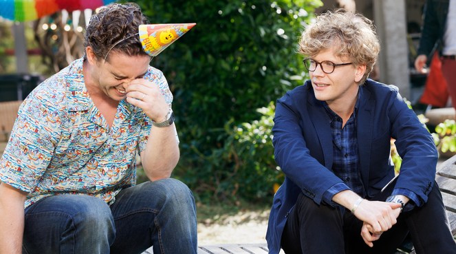 Car en effet, on pourrait penser que Le talent de mes amis est une énième comédie lambda mettant en scène une nouvelle génération de comiques français qui ont fait leurs gammes à la télévision notamment Audrey Lamy sur M6 avec la série « Scènes de ménages ». S’il s’agit effectivement d’une comédie – tous les ressorts sont là, rassurez-vous ! – le film a le mérite d’apporter une touche de gravité et de poser des questions existentielles. Ainsi lorsqu’Alex revoit Thibault et constate son apparente réussite et son apparente aisance, il s’interroge tout simplement sur lui-même et se demande s’il n’est pas temps de réaliser son rêve, celui d’être une grande star de la chanson. En face, Jeff, derrière son air d’abruti et son attitude désinvolte, veut profiter de la vie tout en étant présent pour sa famille, il semble même la voix de la raison, celle que veut mettre en garde Alex. Les choix de ce dernier vont avoir un impact sur son entourage et entraîner un effet de domino, ce qui poussera le fameux trio à s’expliquer de temps à autre mais aussi à prendre de la hauteur.