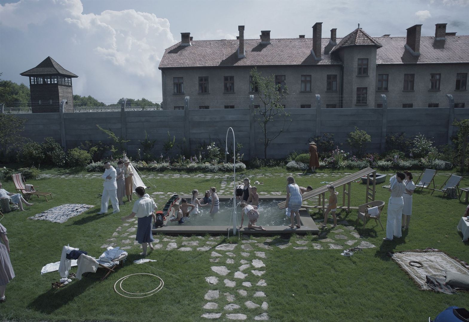 Comme je l’écrivais plus en amont, Glazer est un cinéaste assez atypique et son nouveau film ne déroge pas à la règle. Dès le départ, le spectateur qu’on est plonge dans ce qui semble être le quotidien de la famille Höss. Tandis que monsieur travaille, Hedwig, la femme, s’occupe du foyer et de ses enfants ou encore reçoit régulièrement des invités. Elle n’est pas seule puisque des domestiques polonaises de confession juive sont là pour faire les bonniches, ce qui lui permet quand même de profiter de cette belle maison, un véritable havre de paix.