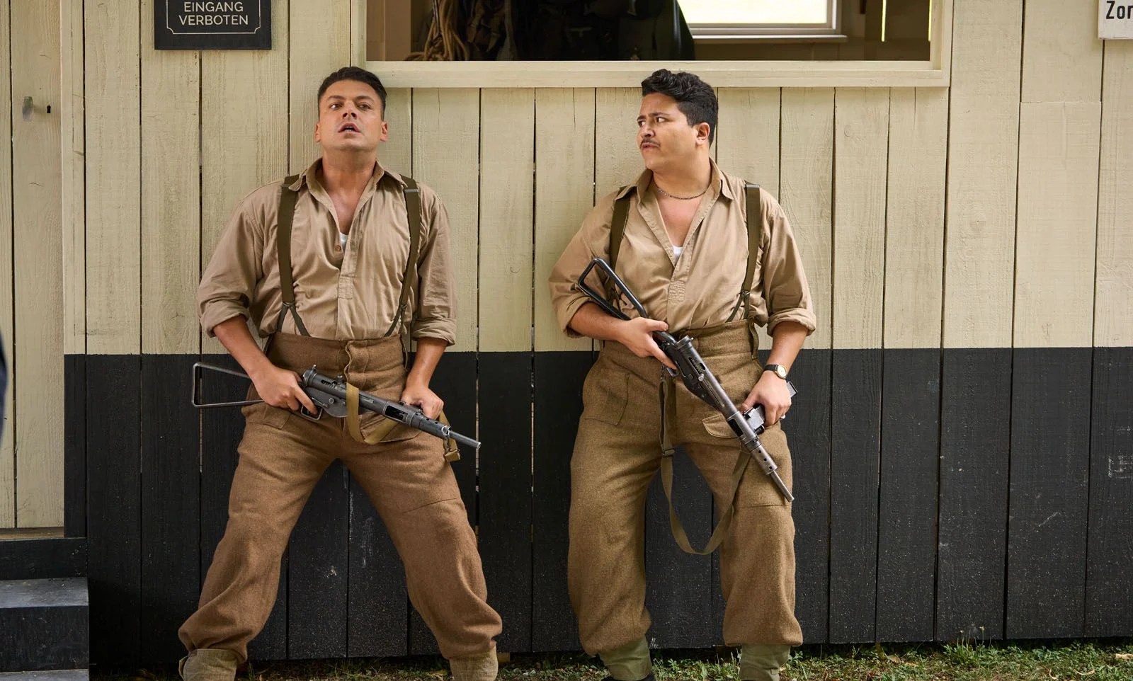 Pourtant, il avait quand même de bonnes idées d’autant que ce n’est pas la première fois qu’on traite du Débarquement et plus largement de la Seconde Guerre mondiale sous un ton satirique. Les Charlots s’y étaient d’ailleurs essayé avec Les Bidasses en Folie en 1971, réalisé par Claude Zidi. Je ne sais pas si Claude Zidi, second du nom, a vu le film de son père mais s’il a voulu tenter quelque d’innovant, hé ben c’est plus que mitigé. Le jeu d’acteur est poussé jusqu’à la caricature la plus grotesque – même Didier Bourdon est à la limite du ridicule en général de la Wehrmacht – et encore une fois, Kev Adams campe le rôle du mec maladroit, notamment avec les filles mais qui deviendra à force de quiproquo et de situations « WTF », le héros hors-pair.